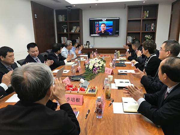李培根院士與集團高管們的見面會上,通過網(wǎng)絡(luò)連接了遠在加拿大的集團北美總部辦公室,集團董事長王東博士在地球的另一端和武漢總部會場進行視頻連線。會上,集團董事長王東博士首先向在座的高管們隆重介紹了李培根院士加入集團的情況。他說:“非常榮幸,也非常激動,能邀請李院士加入到我們愛康集團,成為我們聯(lián)席董事長。我跟李院士認識至今已經(jīng)十五年了,共同的價值觀讓我們結(jié)下不解之緣?;厥资迥陙?,李院士在我們集團的發(fā)展中,參與了很多次重大決策,對修訂《愛康基本法》也提出了很多指導性意見。”