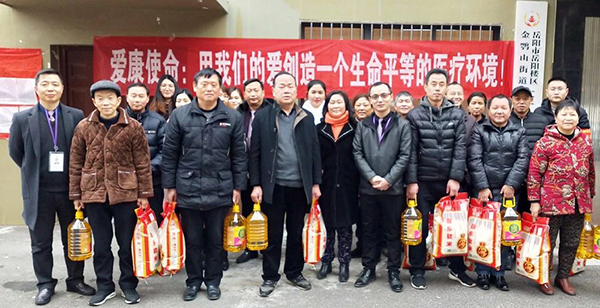 又是一年新春近,走訪慰問暖人心。1月18日上午,岳陽愛康醫(yī)院開展“進社區(qū),送溫暖”慰問活動。愛康醫(yī)院執(zhí)行副總裁林志福、行政部總監(jiān)秦飛、心血管內科主任胡群、骨科主任劉鴻程等參加此次活動。