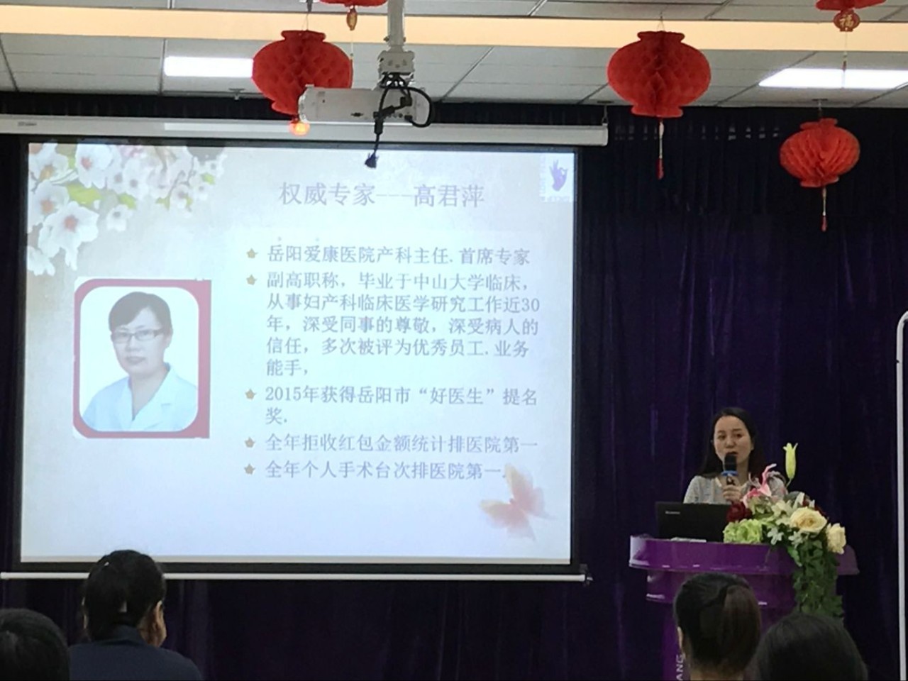 隨著人們生活水平的不斷提高和二胎政策的全面放開(kāi),“準(zhǔn)媽媽”們的問(wèn)題也越來(lái)越多。為幫助更多的準(zhǔn)媽媽們能夠孕育出健康的寶寶,解決準(zhǔn)媽媽備孕階段、孕期里的難題和困惑,特別是高齡育齡婦女能夠全面科學(xué)地了解優(yōu)生優(yōu)育知識(shí),6月9日上午9:30,由岳陽(yáng)愛(ài)康醫(yī)院主辦的“孕媽媽公益大講堂”走進(jìn)街道社區(qū)第六站在醫(yī)院一樓的多功能廳準(zhǔn)時(shí)開(kāi)課。